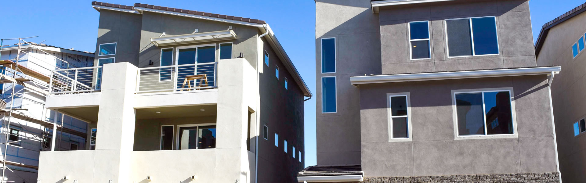 A three-story production house project with a modern and contemporary design that has been engineered to seamlessly incorporate steel features into these wood framed homes.This series of homes range from 1,600 sqft to over 2,100 sqft with options that include cantilevered balconies, covered decks, a game room, and many more.